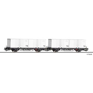 Tillig 70056 Güterwagenset, Deutschen Post, mit zwei Containertragwagen Post aa-t/12,8 beladen mit zwei 20' Containern, Ep. IV Spur H0